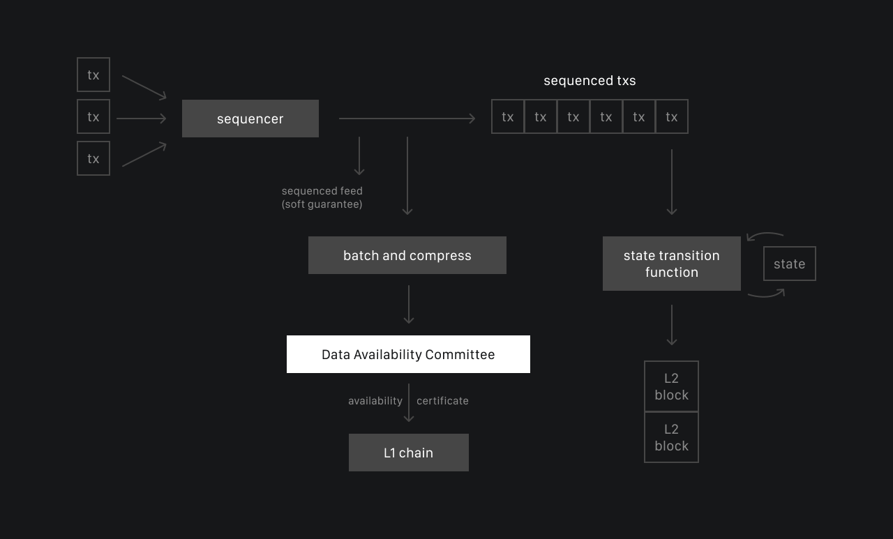 DAC: This is a group of trusted network participants who collectively store and provide transaction data for rollups. Unlike publishing all data on the blockchain (as in Ethereum), DAC minimizes the load on the main layer by keeping data off-chain while ensuring its availability for validation. It also guarantees access to data necessary for proper state validation.