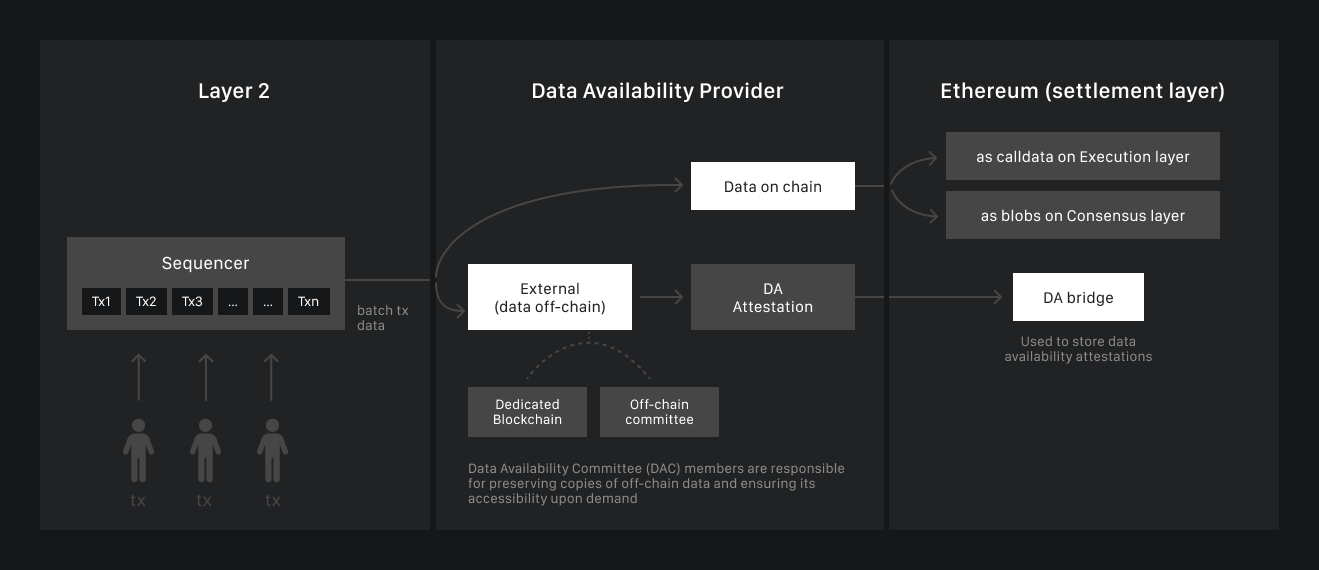| Arbitrum DAC, EigenDA | Celestia, Avail DA |