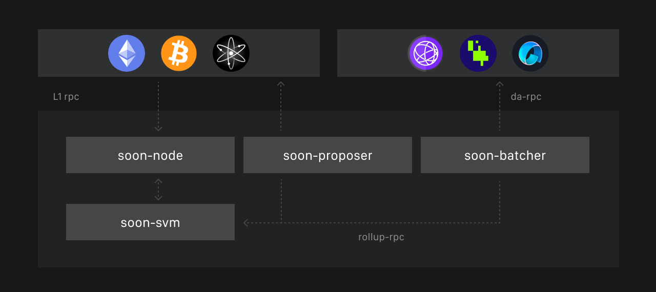 But Soon addresses this issue by introducing the Decoupled SVM structure, where the TPU (Transaction Processing Unit) is separated from Solana's consensus and controlled by the rollup node. This innovation eliminates the need for vote transactions, reducing unnecessary DA consumption and enhancing L2 efficiency.